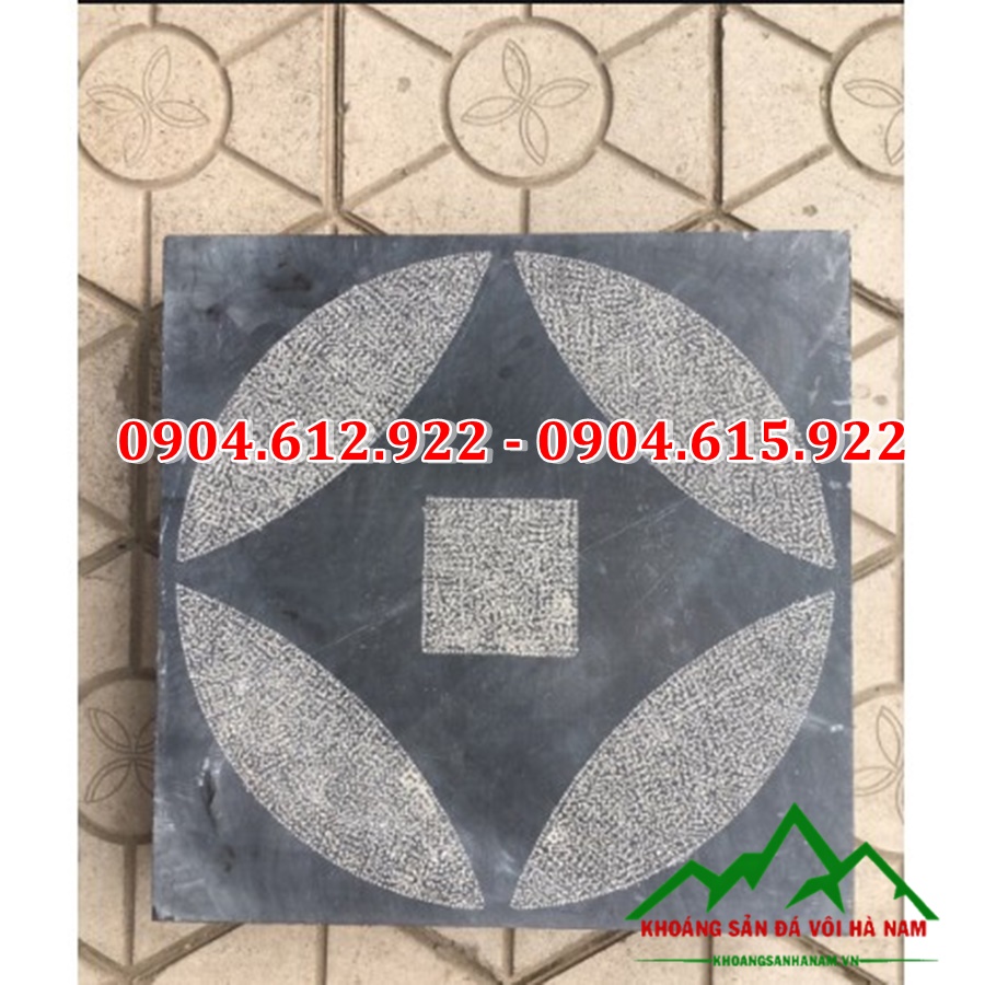 - Bề mặt được băm nhám, hoa văn đồng tiền cổ được chạm khắc chi tiết ở giữa, màu sắc xanh đen. Vân đá tự nhiên đem tới giá trị thẩm mỹ cao cho công trình sử dụng.