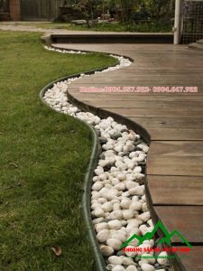 Dùng sỏi trang trí tạo đường đi, lối đi trong sân vườn đẹp mắt đẹp mắt. Với việc kè đá cuội trứng xung quanh và trồng cây tạo mảng xanh hai bên, công việc còn lại là rải sỏi vào vị trí đường đi, tạo thành một dải sỏi duyên dáng.
