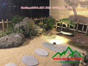 Hoặc cũng có thể dùng sỏi trang trí để làm một mảng sân vườn với đá cuội, đá dặm bước chân chen cùng cây bụi nhỏ tạo thành sân vườn khô tuyệt vời.